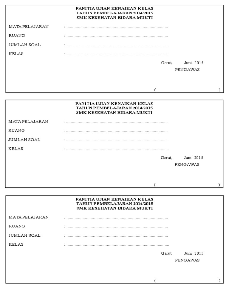 Cover Amplop Soal Ujian Sekolah Doc Bang Tarom