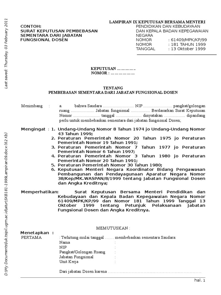 Contoh sk jabatan fungsional. Contoh sk fungsional guru pns. Contoh sk kenaikan jabatan fungsional guru kumpulan dokumen file guru modul guru pembelajar slbtksdsmpsmasmk lengkap 2016. Fotokopi nilai prestasi kerja paling sedikit bernilai baik dalam 2 dua tahun terakhir.