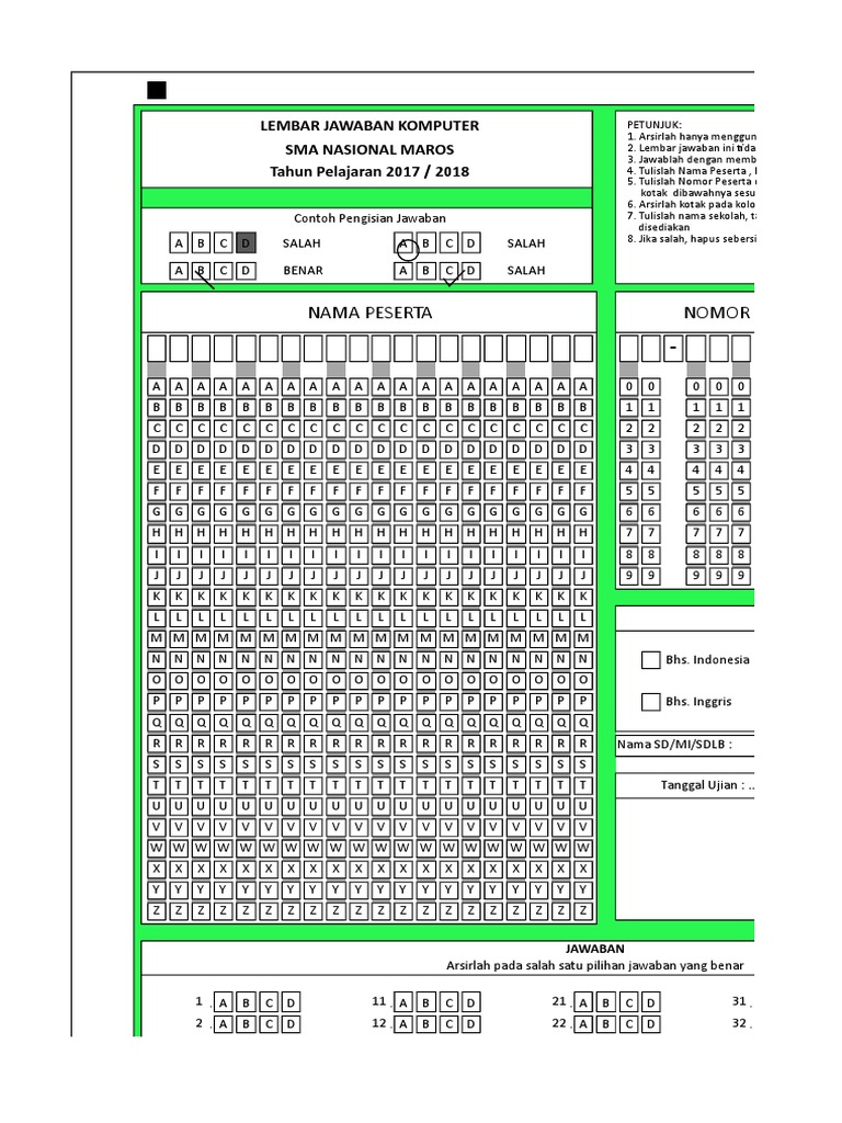 Download Lembar Jawaban Komputer Ljk Belajar Pendidikan Permainan Kata