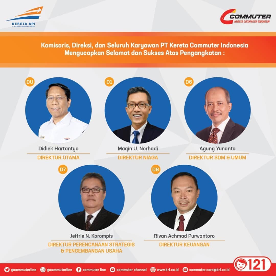 Info Commuter Line V Twitter 3 Bapak Rivan Achmad Purwantono Sebagai Direktur Keuangan Pt Kai 4 Bapak Maqin U Norhadi Sebagai Direktur Niaga Pt Kai 5 Bapak Agung Yunanto Sebagai Direktur Sdm