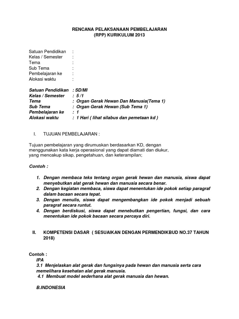 Download Rpp Kelas 3 Sd Kurikulum 2013 Edisi Revisi 2018 Tema 1