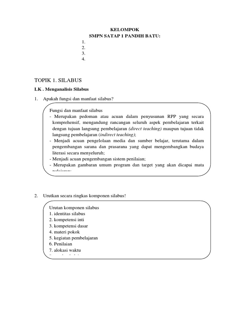 Silabus adalah rencana pembelajaran pada suatu dan atau kelompok mata pelajaran tema tertentu yang mencakup standar kompetensi kompetensi dasar materi pokok pembelajaran kegiatan pembelajaran indikator pencapaian kompetensi untuk penilaian penilaian alokasi waktu dan sumber belajar kunandar 2011. Implementasi pembelajaran per semester menggunakan penggalan silabus sesuai dengan standar kompetensi dan kompetensi dasar untuk mata pelajaran dengan alokasi waktu yang tersedia pada struktur kurikulum. Sebagai pedoman dalam menyusun promes program suatu pelajaran dan juga sebagai persiapan dalam mengajar agar lebih rapi dan terorganisir secara lebih matang.
