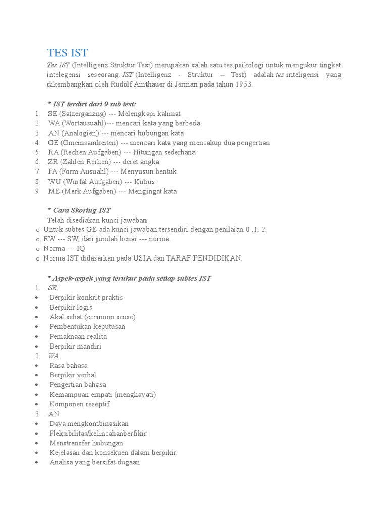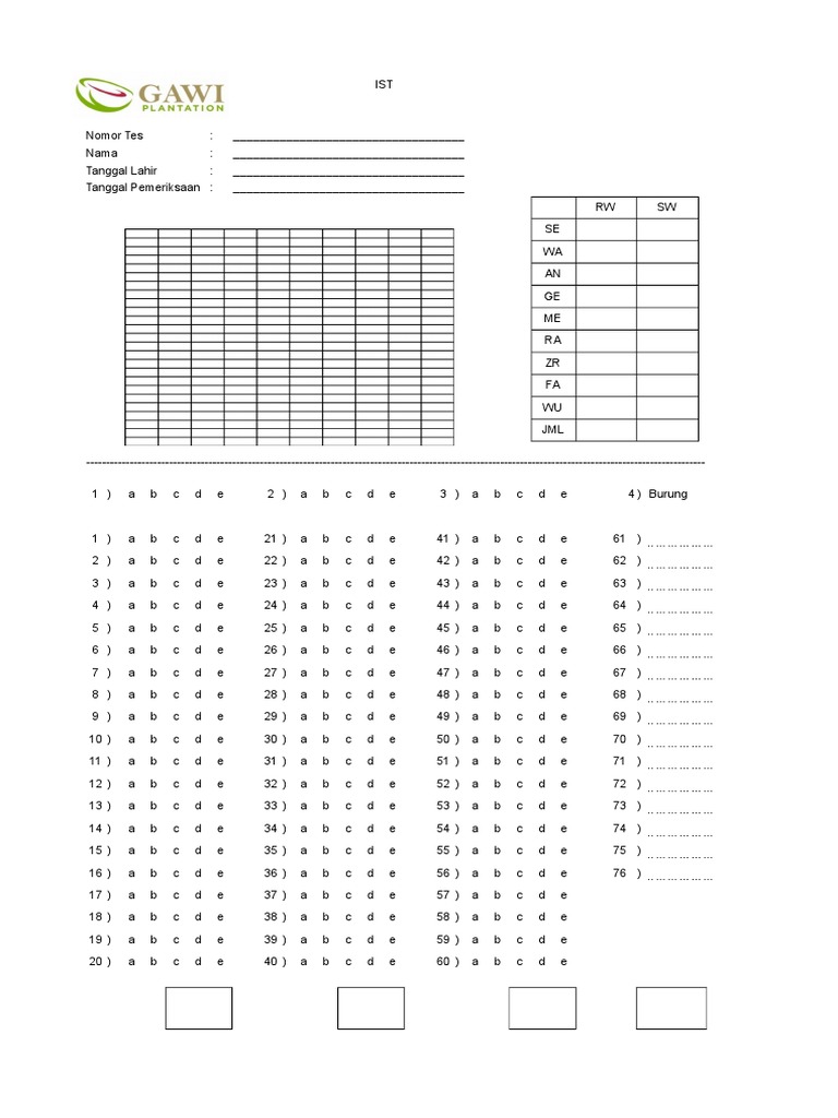 Alat Tes Psikologi Ist Lengkap Dengan Aplikasi Skoring Ist Pdf Download Gratis