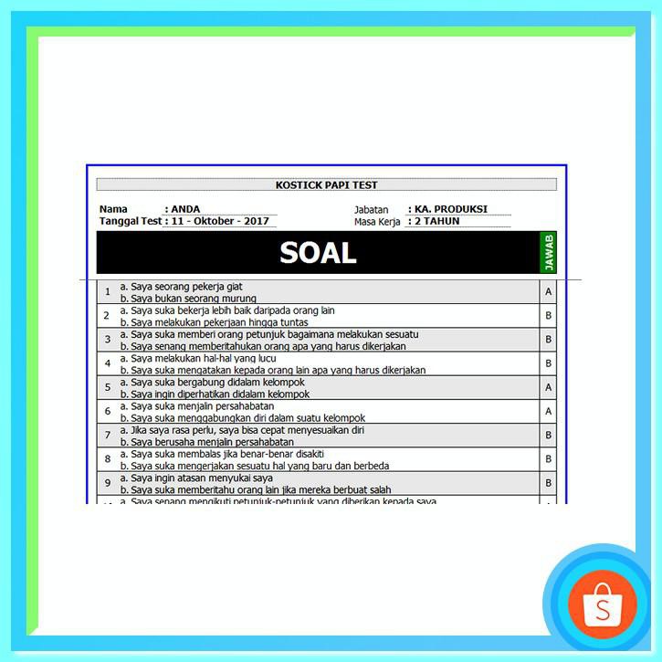 Promo Baru Software Psikotes Kepribadian Dan Cara Skoringnya Papi Dan Disc Shopee Indonesia
