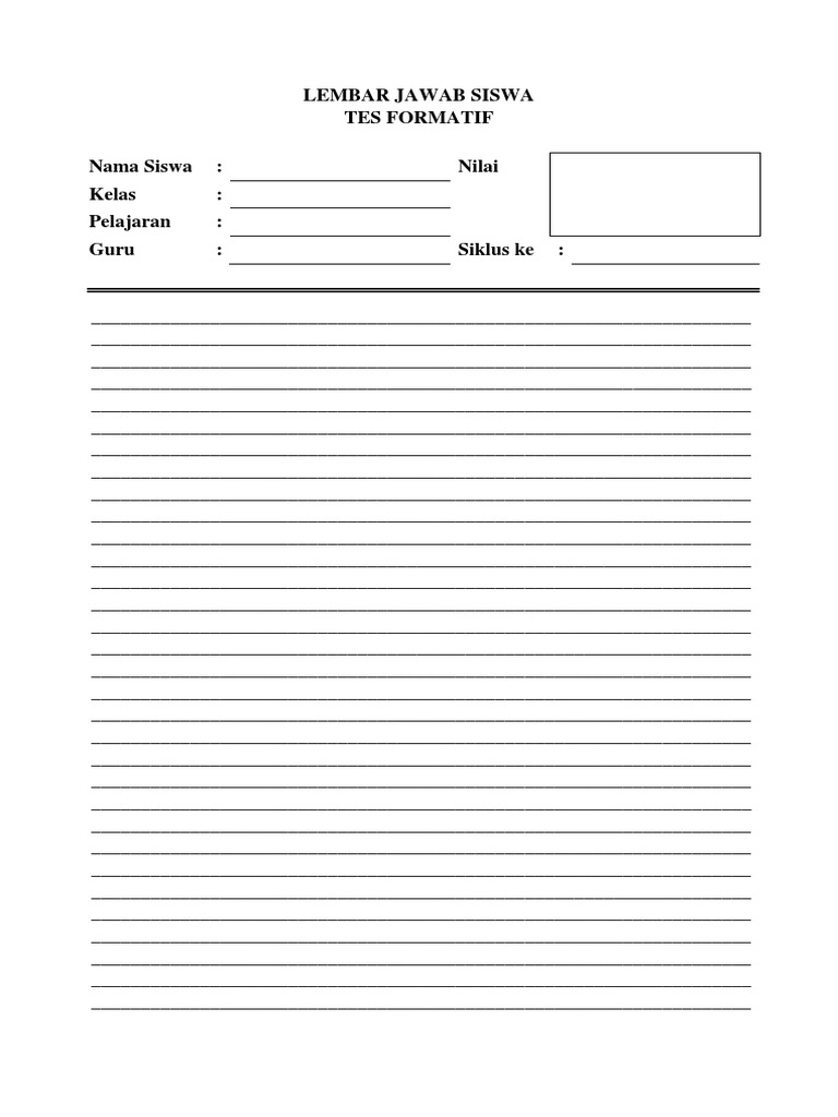 Contoh Format Lembar Jawaban Ulangan Multi Mata Pelajaran Berkas Edukasi