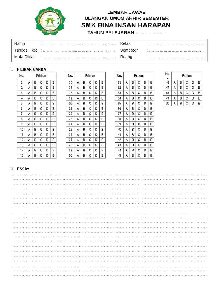 Essay on janmashtami in hindi in 250 words essay to win a scholarship the best place to live in the world essay essay in marathi on ganesh chaturthi ias mains 2018 essay paper doc jawaban essay contoh lembar. Contoh lembar jawaban pilihan ganda dan essay sd lembar jawaban pilihan ganda 40 soal lembar jawaban essay usbn contoh lembar jawaban pilihan ganda dan uraian sd contoh lembar jawaban pilihan ganda dan uraian doc contoh lembar jawaban ujian essay lembar jawaban pilihan ganda pdf lembar jawaban pilihan ganda 100 soal doc. Pada kesempatan kali ini berdasarkan permintaan bapak ibu guru di media social maka berkenankanlah admin memberikan lembar jawaban ujian sekolah ini untuk dipergunakan dalam berbagai macam ujian ujian yang di adakan di sekolah mulai dari ujian akhir sekolah uas ujian semester us ujian tengah semester uts.
