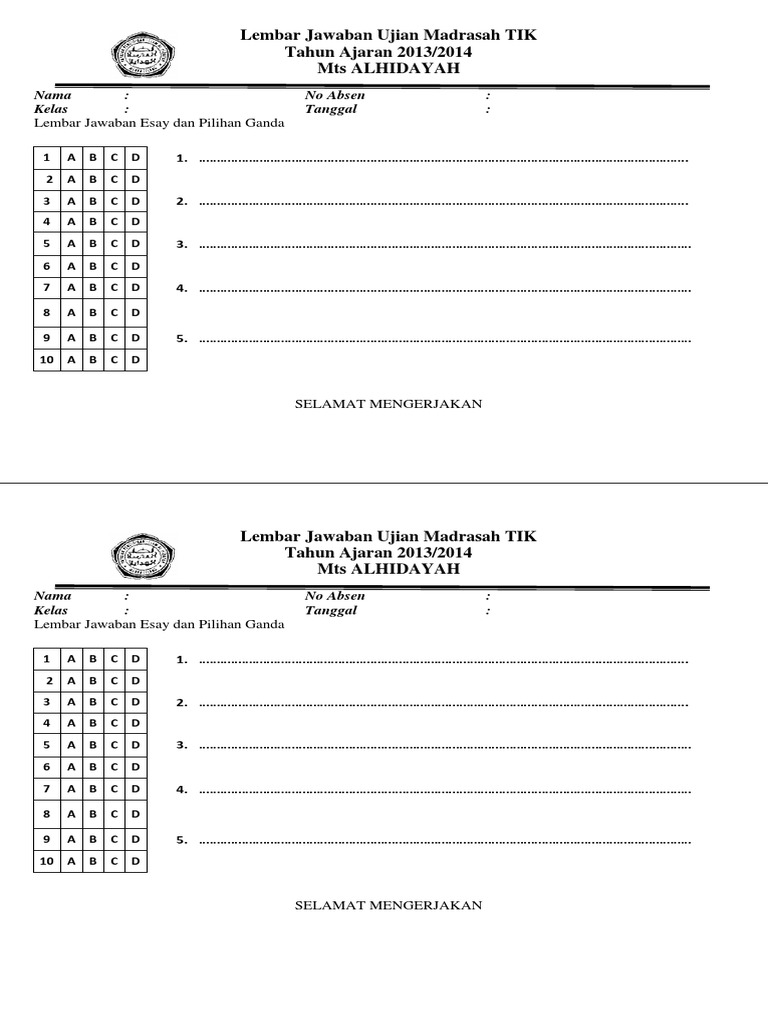 Lembar Jawaban Ujian Sekolah Semua Jenjang Mc Word Website Nasty