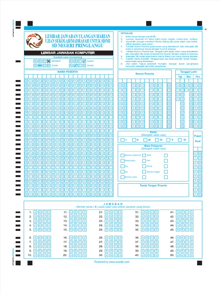 Format Ljk Ujian Sd Mi Untuk 50 Soal Guru Loyal