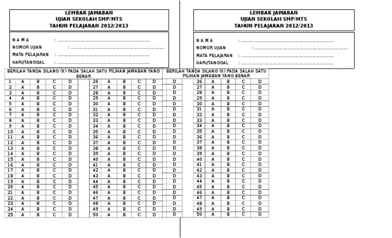 Format Lembar Jawaban Ujian Nasional Tinggal Cetak Download Aplikasi Guru