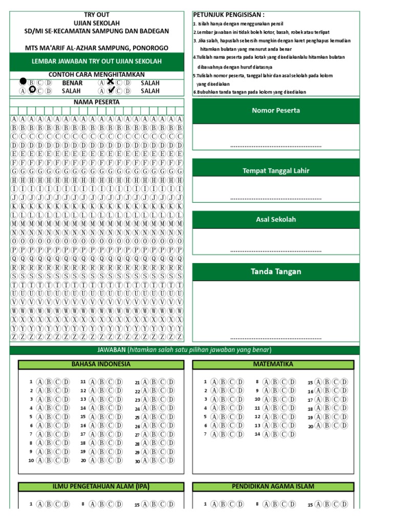 Contoh Lembar Jawaban Komputer Ljk Try Out