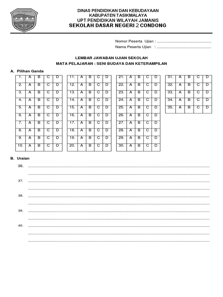 Contoh Lembar Jawaban Pilihan Ganda Sd