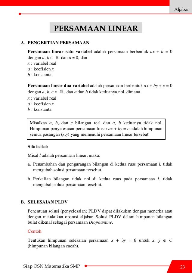 Kisi Kisi Soal Olimpiade Matematika Tingkat Smp Mts Se 2 2 Menyelesaikan Persamaan Linear Satu Pdf Document