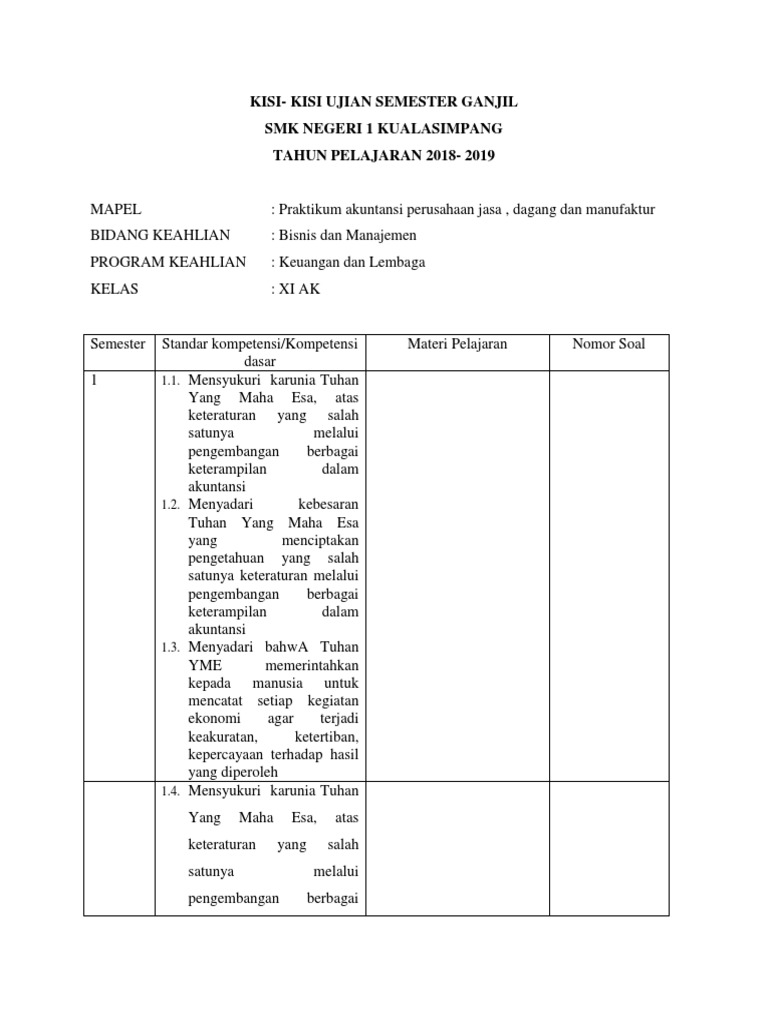 Kisi Kisi Praktikum Akuntansi Perusahaan Jasa Klx Xi Ak Docx
