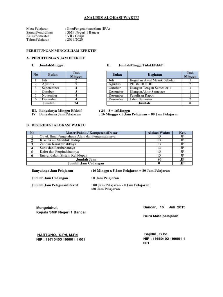Analisis Alokasi Waktu Pembelajaran Ipa Smp