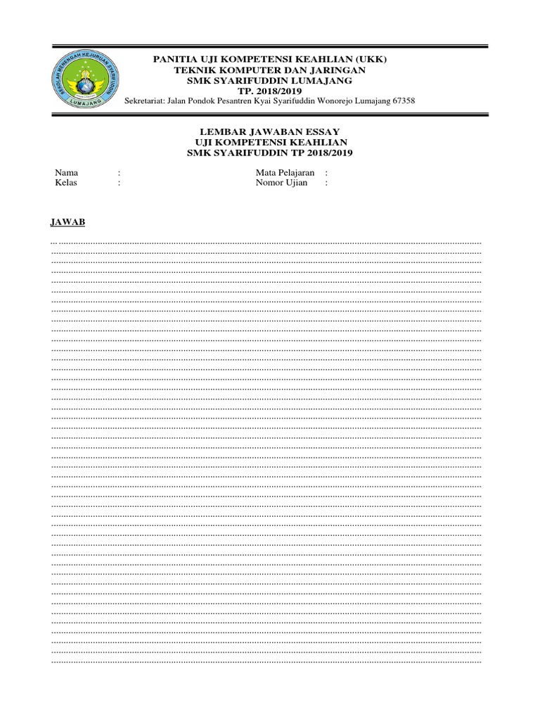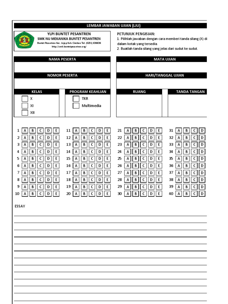 Contoh lembar jawaban ujian essay. Download contoh lembar jawaban ujian semester ganjil semester genap excel jawaban jawabannya baik dari soal soal pilihan ganda ataupun essay. Lembar jawaban ini bisa bermacam macam bentuknya. Berikut ini contoh pembahasan atau jawaban soal uraian latihan us ipa sd mi.