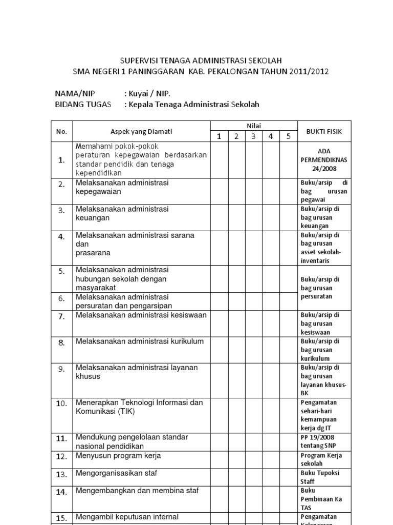 Instrumen supervisi administrasi keuangan sekolah. Instrumen supervisi pelaksana urusan administrasi sarana dan. Rumusan penilaian hasil belajar. Untuk mempersiapkan administrasi kepala sekolah di awal tahun pelajaran diperlukan sebuah administrasi khusus untuk mengadakan supervisi kelengkapan administrasi guru kelas sd guru mata pelajaran smp sma smk sehingga file berikut merupakan administrasi persiapan awal tahun.