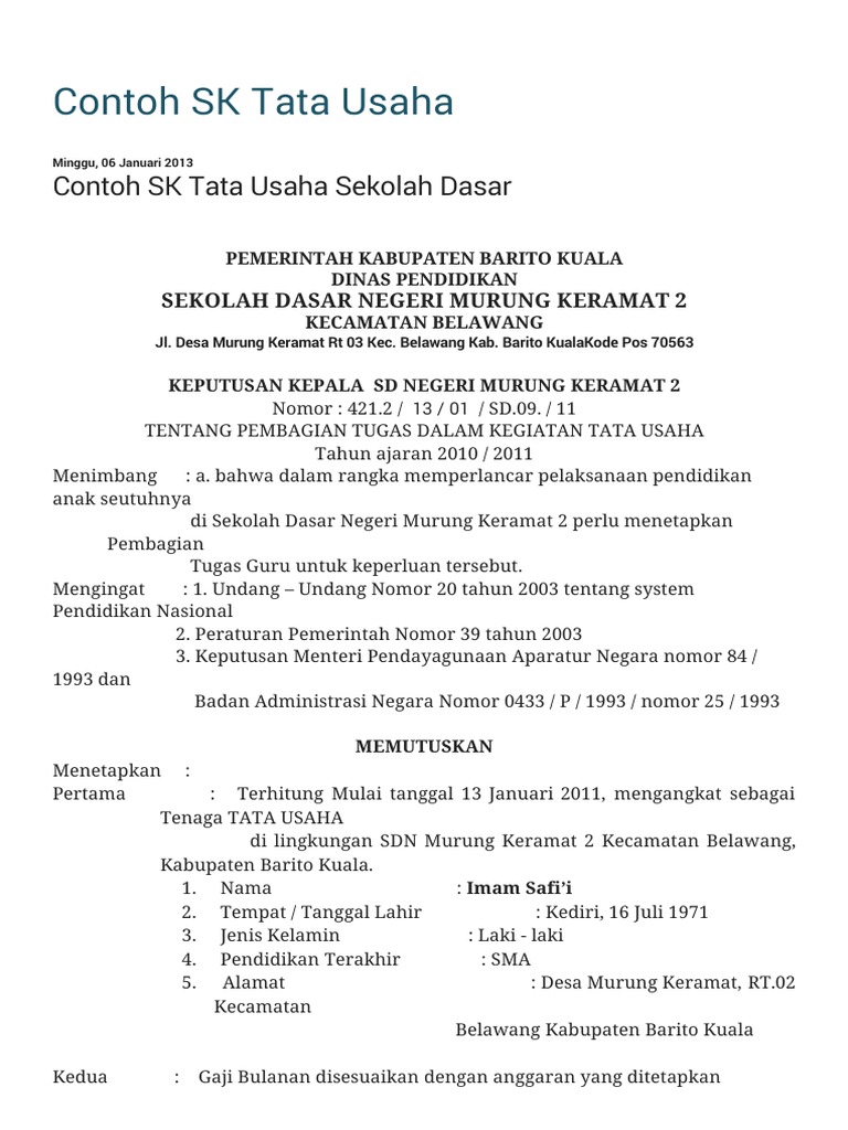 Contoh Sk Tata Usaha Contoh Sk Tata Usaha Sekolah Dasar