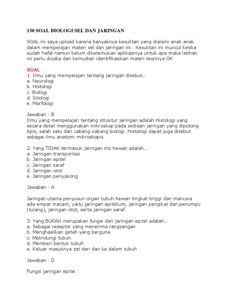 130 Soal Biologi Sel Dan Jaringan Docx