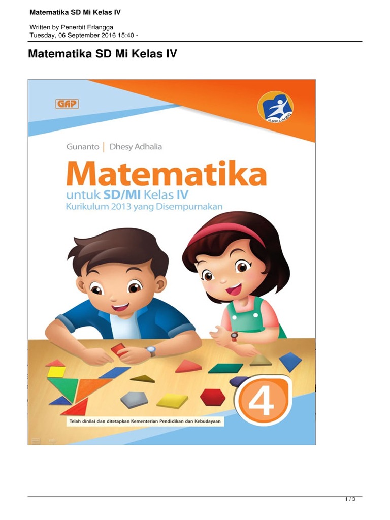 Download buku matematika kelas 4 sd penerbit erlangga pdf. Berikut ini buku matematika k13 kelas 4 revisi 2018 terbaru sebagai pegangan guru dan siswa untuk tahun pelajaran 2019 2020. Buku matematika kelas 4 sd mi kurikulum 2013 edisi revisi 2018. Jual buku matematika kelas 4 sd kurikulum 2013 penerbit gap kota.