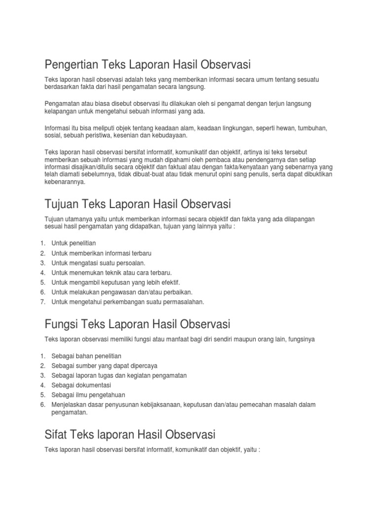 Teks Laporan Hasil Observasi Pengertian Sifat Tujuan Fungsi