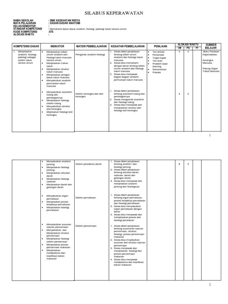 RPP Kurikulum 2013 Revisi. Silabus smk kesehatan jurusan keperawatan kurikulum 2013. Smk raflesia keju ruan.