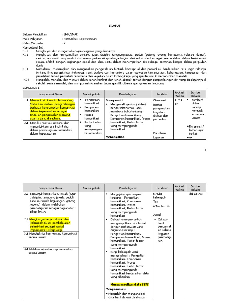 Berikut ini adalah file tentang silabus smk kesehatan jurusan keperawatan kurikulum 2013 yang bisa bapakibu unduh secara gratis dengan menekan tombol download pada tautan link di bawah ini. Komunikasi Keperawatan 108 4. Menghayati dan mengamalkan perilaku jujur disiplin tanggungjawab peduli gotong royong kerjasama toleran damai santun responsif.
