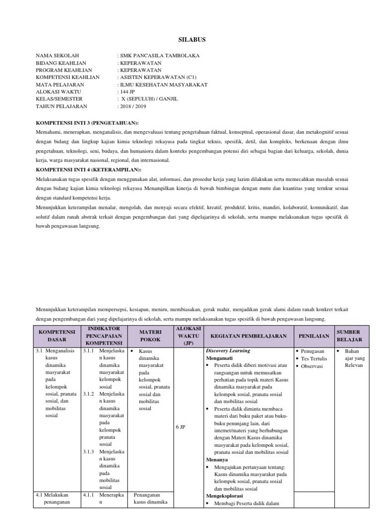 Silabus smk kesehatan jurusan keperawatan kurikulum 2013. Menghayatidan mengamalkan ajaran agama yang dianutnya KI 2. Guru diwajibkan membuat RPP beserta Silabus berdasarkan bidang studi yang diajarkan sesuai dengan Kurikulum yang berlaku seperti Kurikulum KTSP dan Kurikulum 2013.