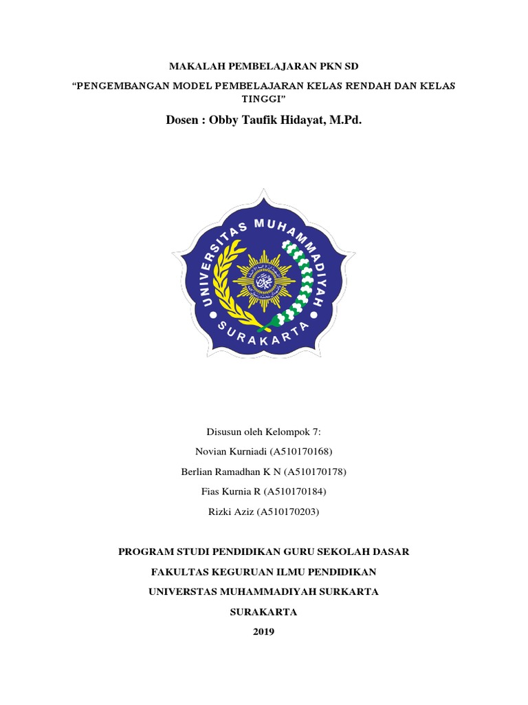 Makalah Pembelajaran Pkn Sd Pengembangan Model Pembelajaran Kelas Rendah Dan Kelas Tinggi