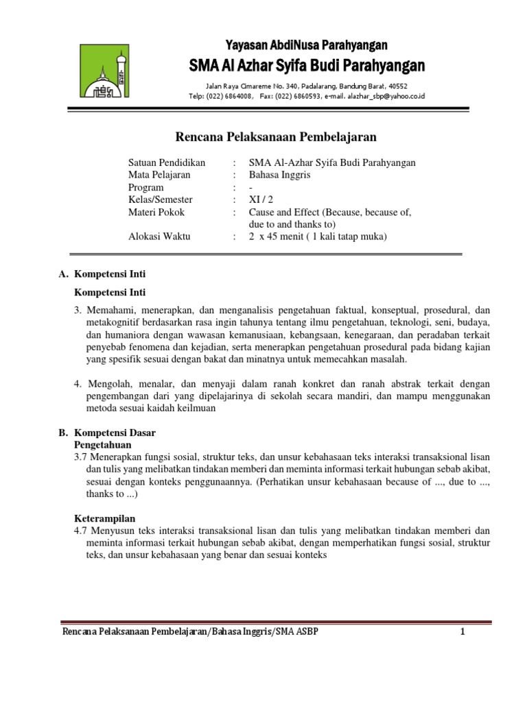 Rpp Wajib Kelas Xi Cause Effect Rev