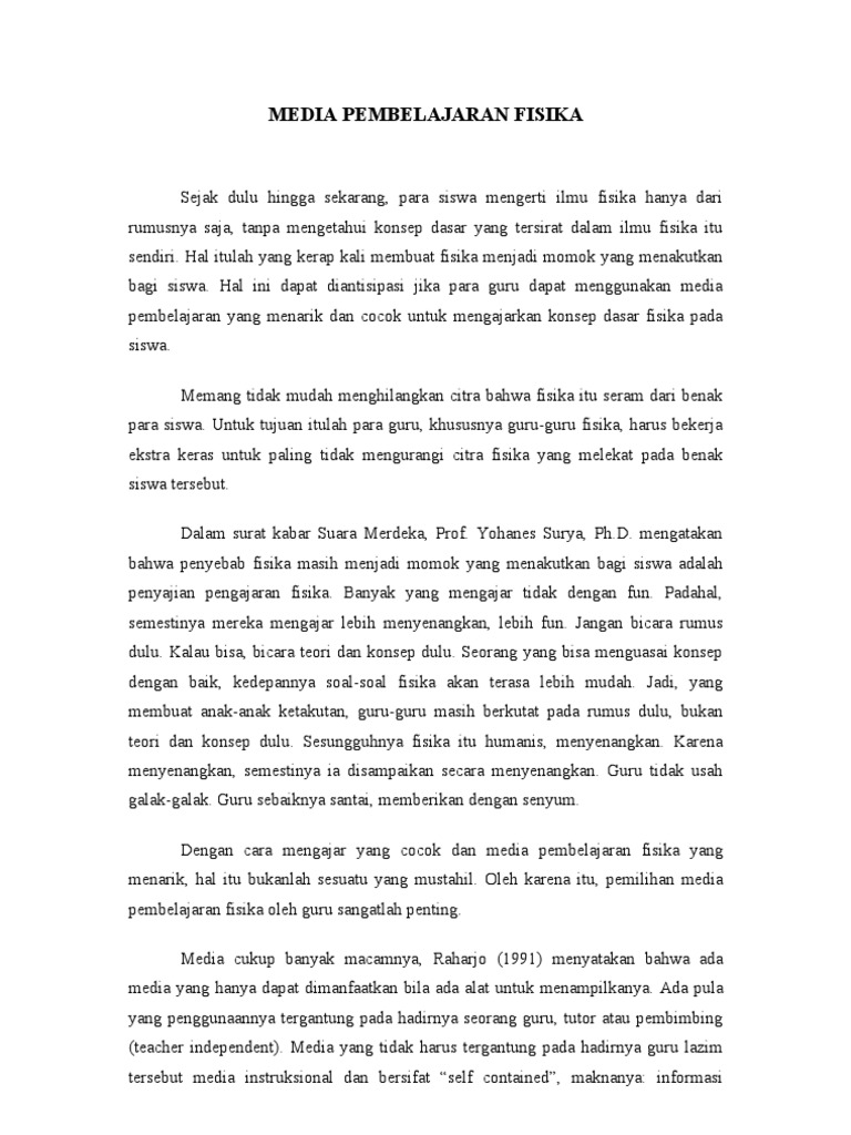 Yang cocok untuk siswa. Dalam konteks pembelajaran kita tentu tidak asing dengan istilah-istilah pendekatan strategi metode teknik dan model pembelajaran. Hal ini dapat diantisipasi jika para guru dapat menggunakan media pembelajaran yang menarik dan cocok untuk mengajarkan konsep dasar fisika pada siswa.