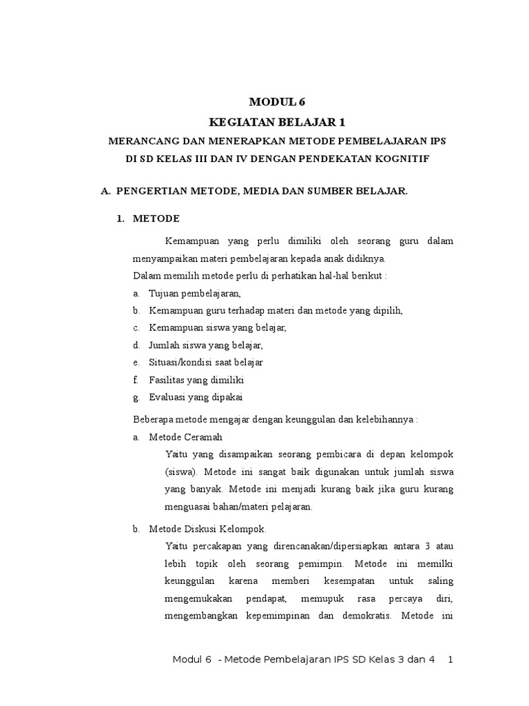 Tugas 1 Modul 6 Merancang Dan Menerapkan Metode Pembelajaran Ips