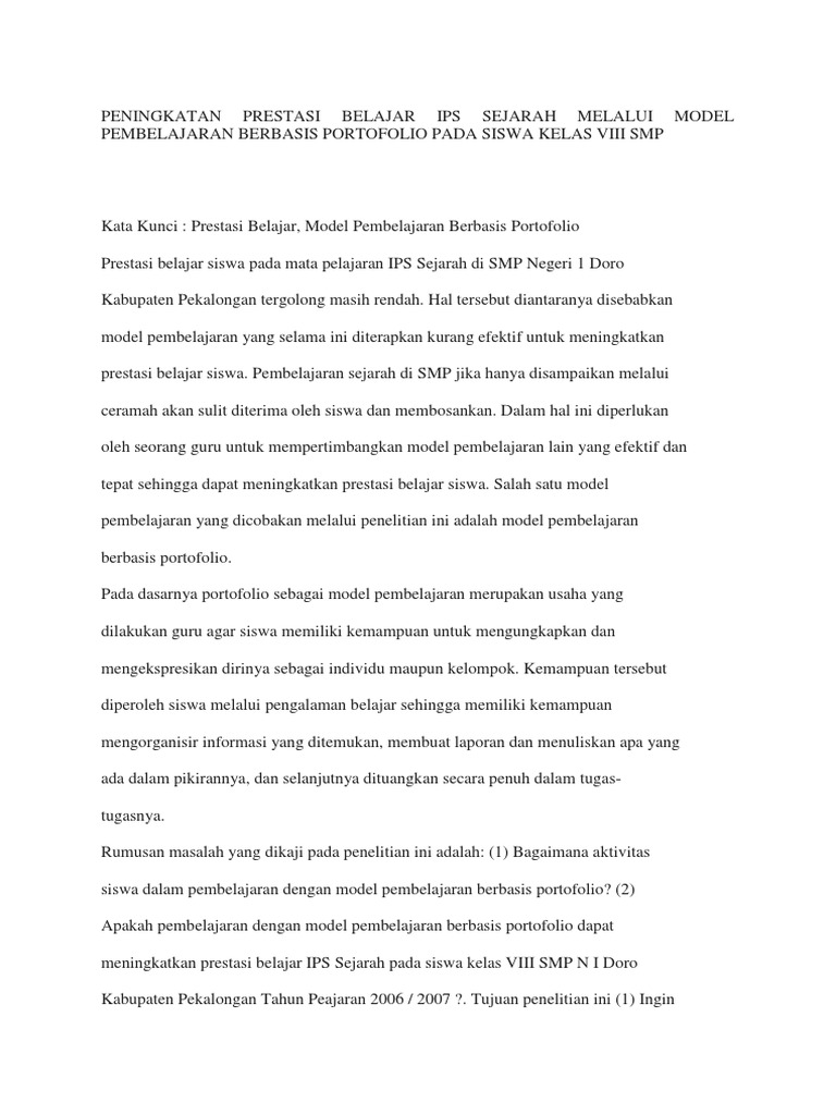 Peningkatan Prestasi Belajar Ips Sejarah Melalui Model Pembelajaran Berbasis Portofolio Pada Siswa Kelas Viii Smp