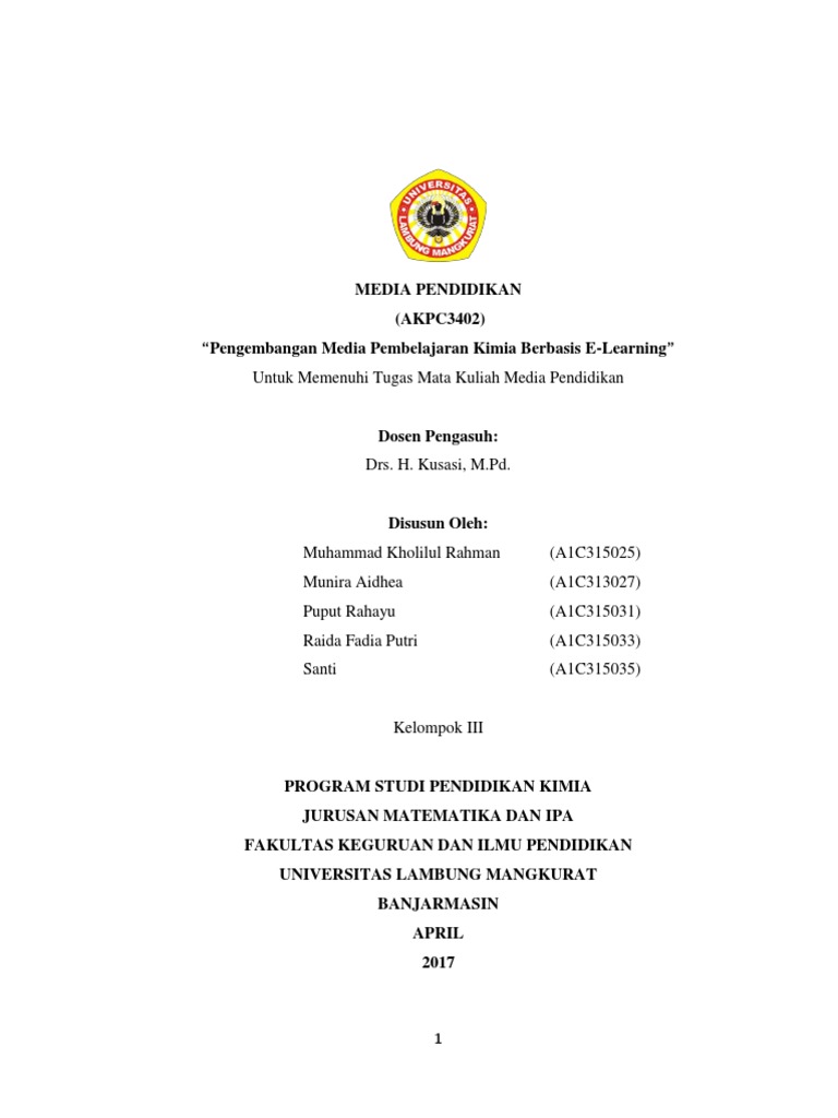 Regina Tutik Padmaningrum Jurdik Kimia UNY PPM Makalah ini disajikan pada kegiatan Pelatihan Pembuatan Media Pembelajaran IPA Berbasis Lingkungan Bagi Guru Sekolah Dasar sebagai Persiapan Penerapan Kurikulum 2013 di SD Kanisius Klepu pada tanggal 67 dan 13. TERLENGKAP Makalah Ikatan Kimia. Platform E-learning media pembelajaran yang kurang sesuai dengan gaya belajar mahasiswa dan lingkungan belajar di rumah yang kurang kondusif.