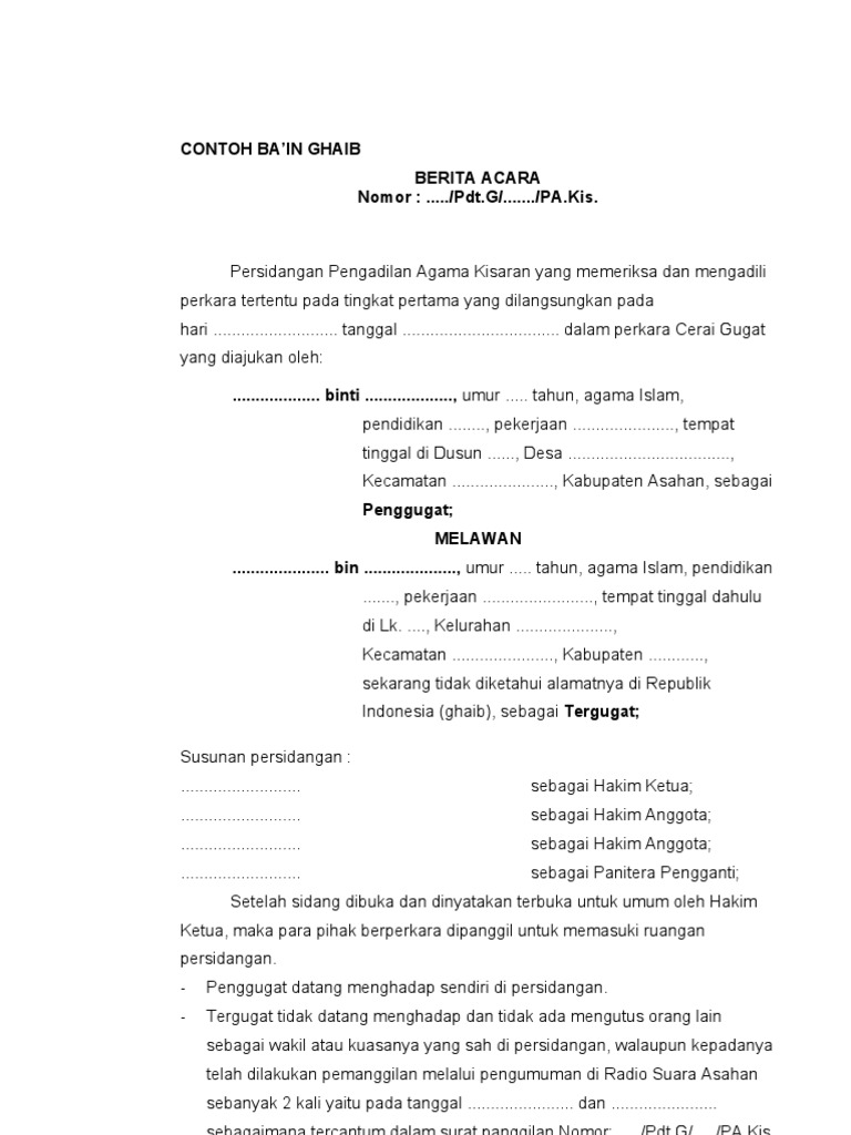 Contoh Surat Cerai Gaib Perceraian Surat Gaib