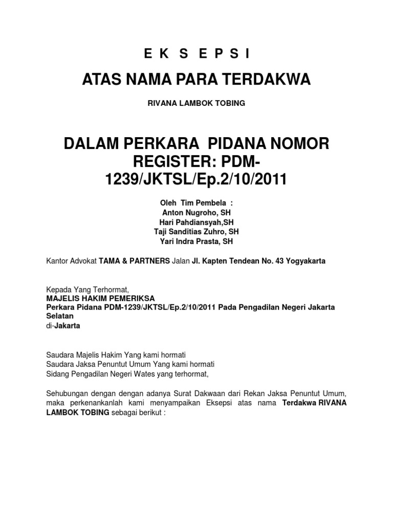Menguraikan Eksepsi Materiil jika ada misalnya karena. Contoh Surat Eksepsi Perkara Pidana have a graphic from the otherContoh Surat Eksepsi Perkara Pidana In addition it will include a picture of a kind that could be observed in the gallery of Contoh Surat Eksepsi Perkara Pidana. 6 Waktu Eksepsi dapat Diajukan.